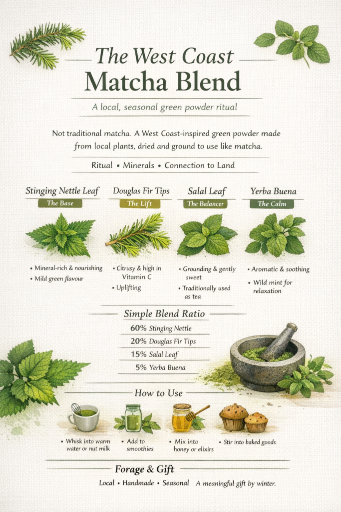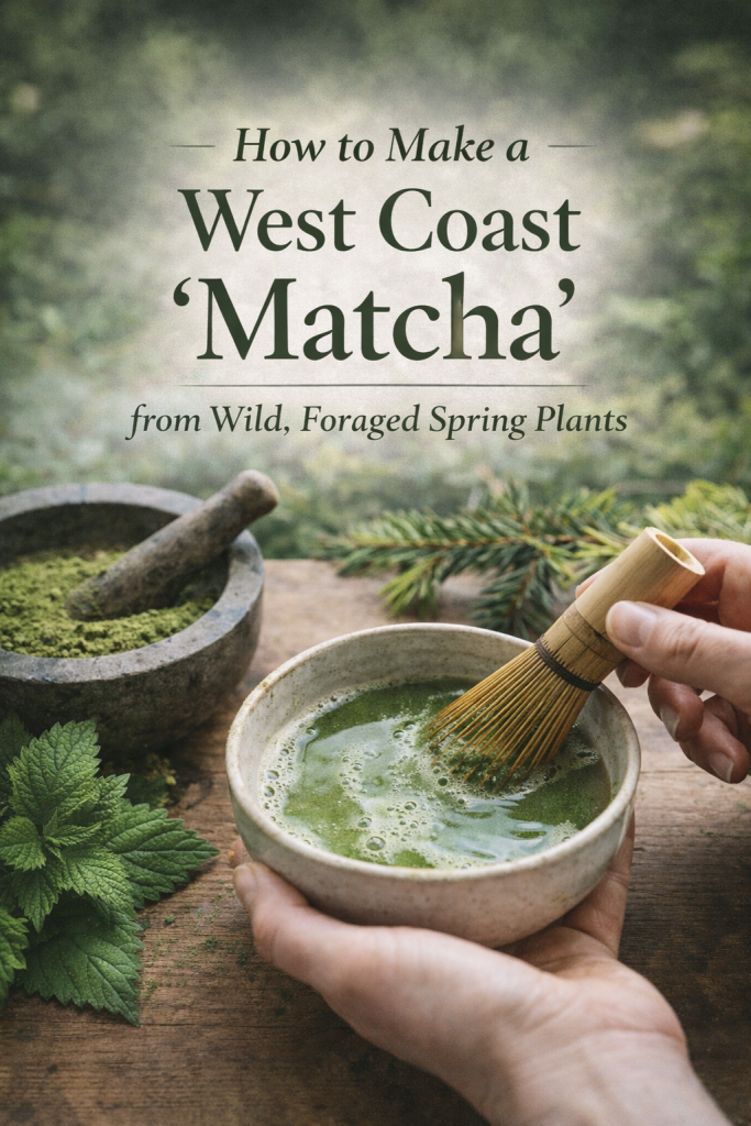 As spring arrives here on the West Coast, local plants become ready for harvesting — plants that can be dried, powdered, and used in the same ritual way we use matcha.